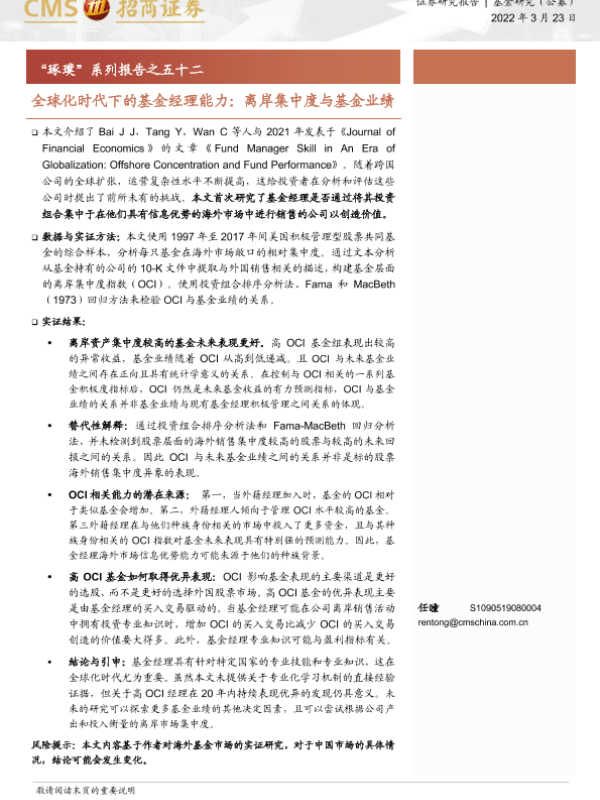 【海通证券】【20220323】全球化时代下的基金经理能力,离岸集中度与基金业绩-20页 行业研究