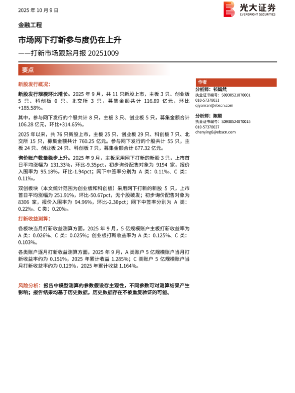 【光大证券】【202510】市场网下打新参与度仍在上升——打新市场跟踪月报 20251009-15页 证券期货研究报告