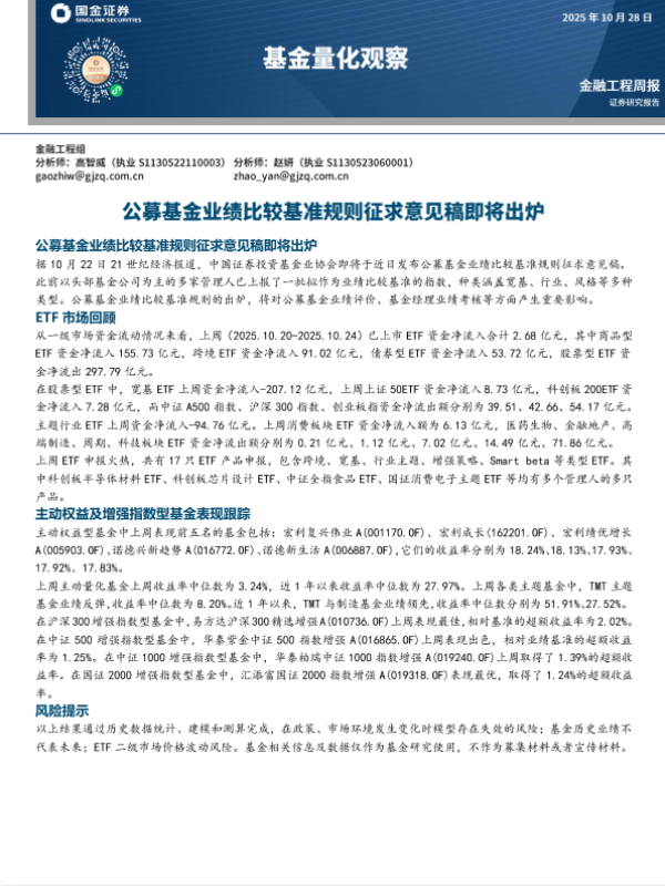 【国金证券】【202510】公募基金业绩比较基准规则征求意见稿即将出炉-11页 证券期货研究报告