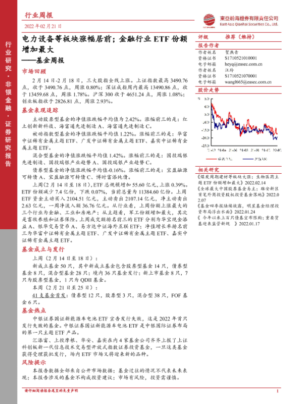 【东亚前海证券】【20220221】基金周报:电力设备等板块涨幅居前;金融行业ETF份额增加最大-21页 行业研究