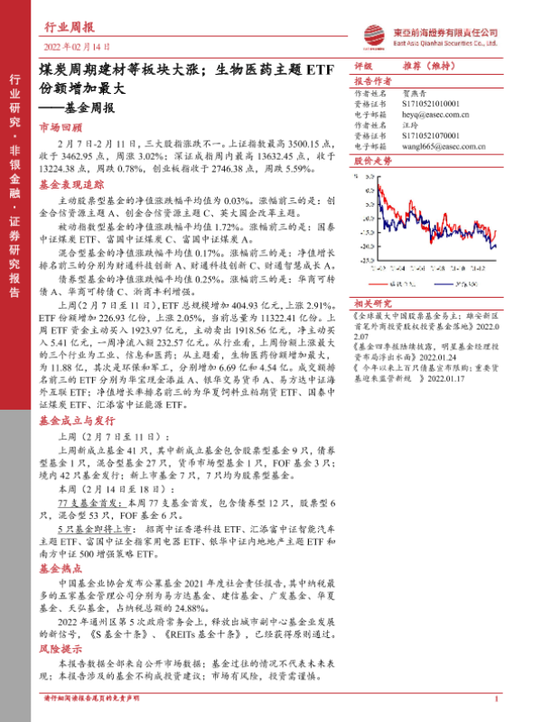 【东亚前海证券】【20220214】煤炭周期建材等板块大涨;生物医药主题ETF份额增加最大-22页 行业研究