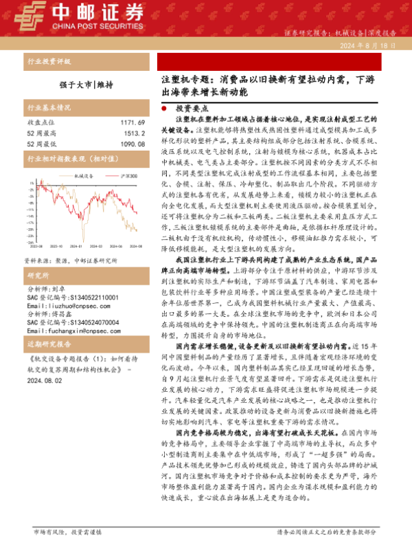【中邮证券】【20240818】机械设备行业注塑机专题:消费品以旧换新有望拉动内需,下游出海带来增长新动能-26页 行业研究