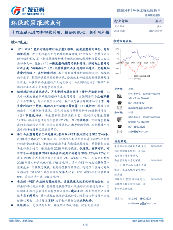 【广发证券】【20210915】十四五强化废塑料回收利用,鼓励同级化、提升附加值-5页 行业研究