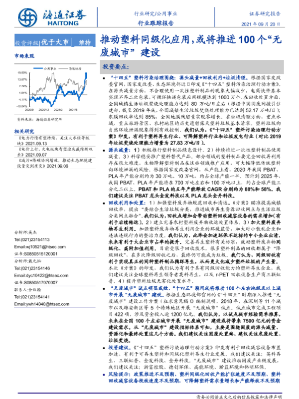 【海通证券】【20210920】推动塑料同级化应用或将推进100个无废城市建设-2页 行业研究