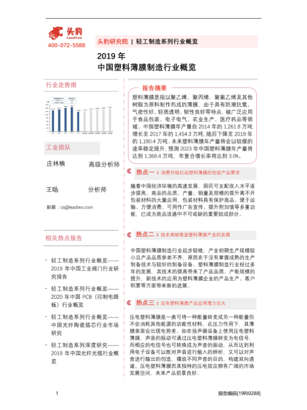 【头豹研究院】【2019】中国塑料薄膜制造行业概览-36页 行业研究