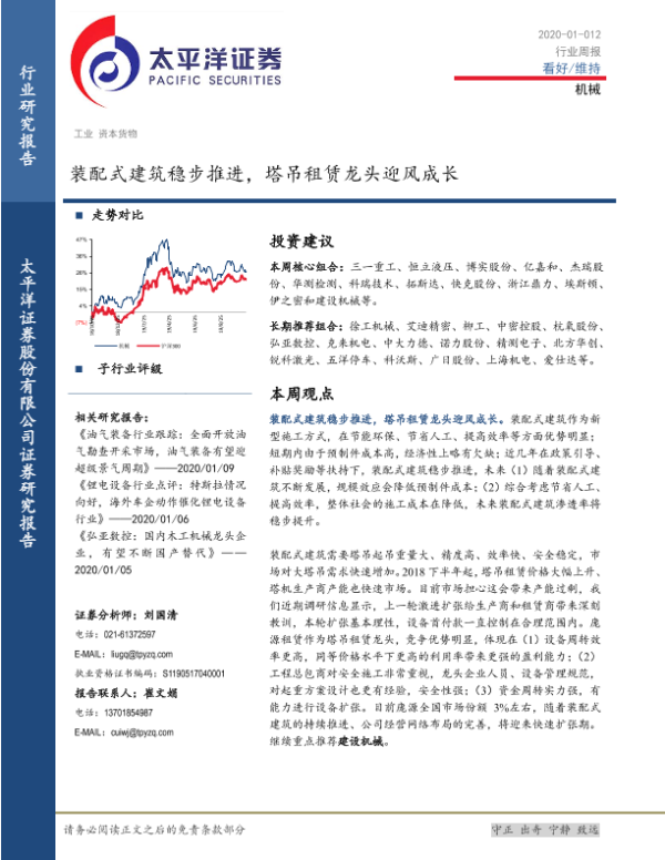 【太平洋证券】【20200112】20200112-太平洋-机械行业周报:装配式建筑稳步推进,塔吊租赁龙头迎风成长-13页 行业研究