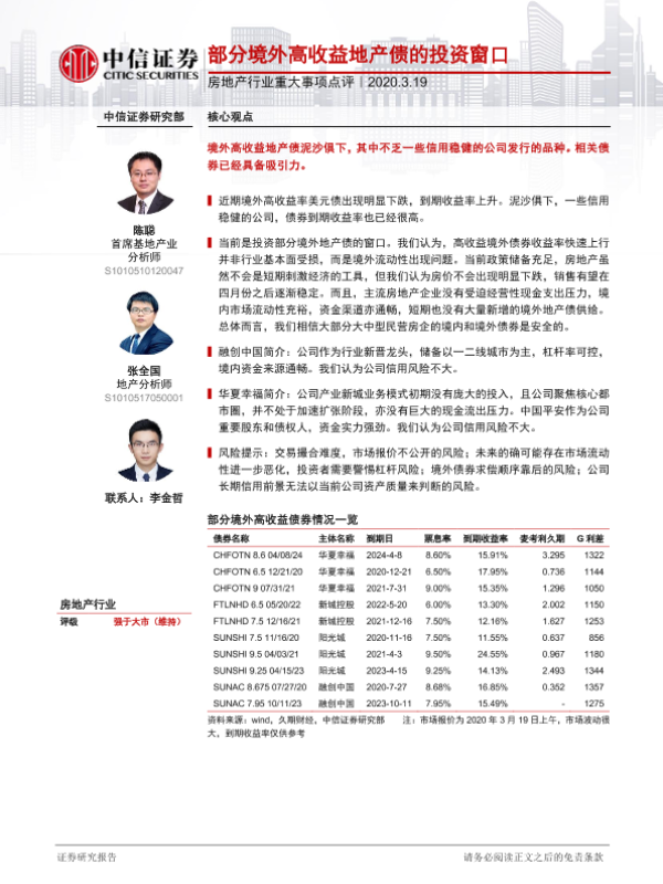 【中信证券】【20200319】部分境外高收益地产债的投资窗口-14页 行业研究
