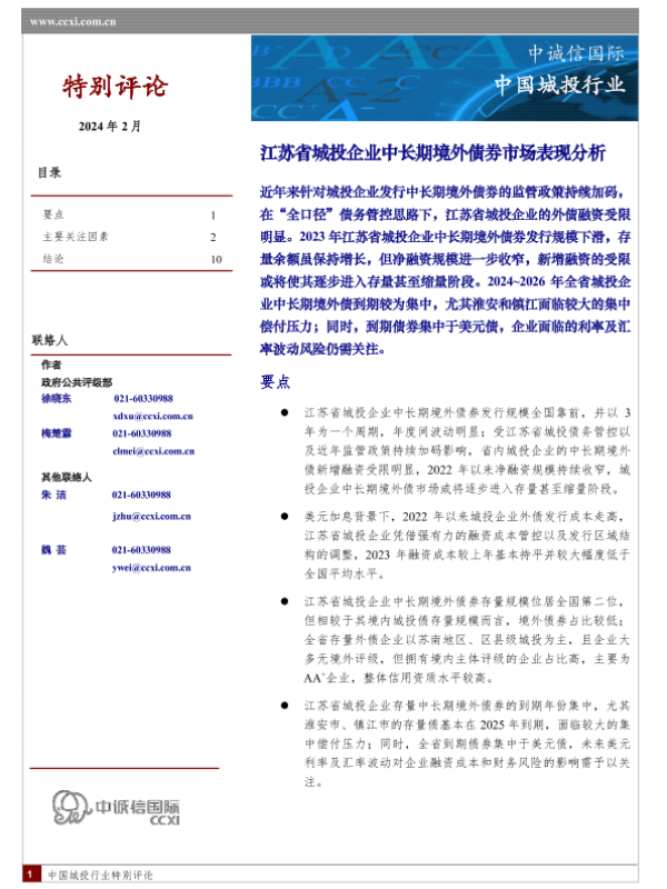 【中诚信国际】【202402】江苏省城投企业中长期境外债券市场表现分析-11页 行业研究