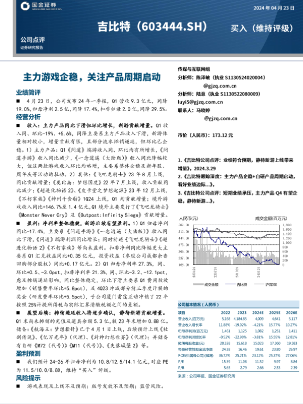 【国金证券】【202403】主力游戏企稳,关注周期启动-4页 行业研究