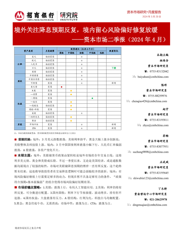 【招商银行】【20240329】资本市场二季报(2024年4月):境外关注降息预期反复,境内留心风险偏好修复放缓-25页 宏观策略