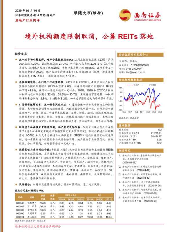 【西南证券】【20200510】境外机构额度限制取消,公募REITs落地-22页 行业研究