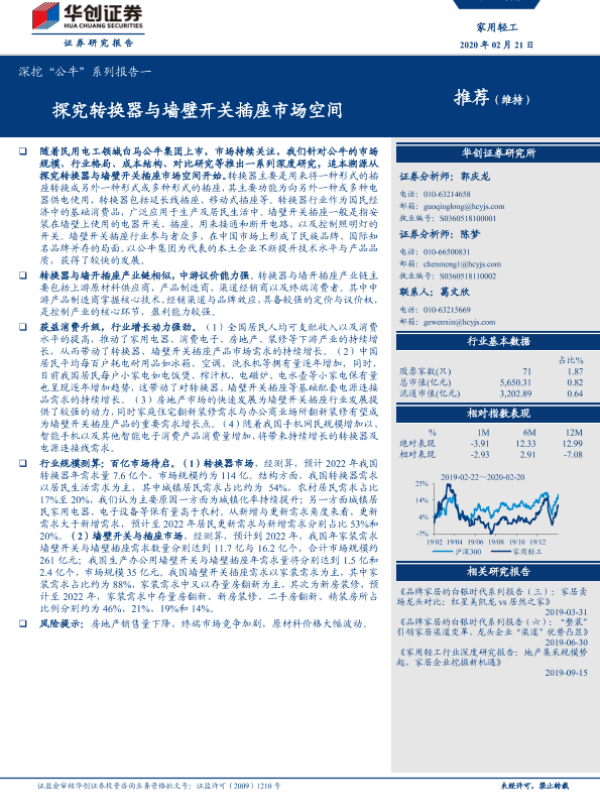 【华创证券】【20200223】轻工制造行业周报:探究转换器和墙壁开关百亿市场,持续提示行业白马公牛集团投资机会-14页 行业研究