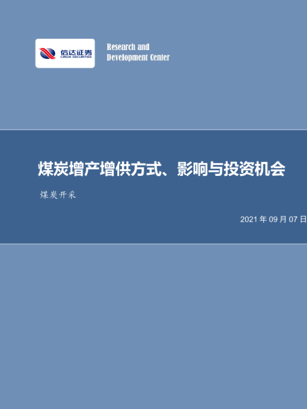 【信达证券】【20210907】煤炭增产增供方式、影响与投资机会-23页 行业研究