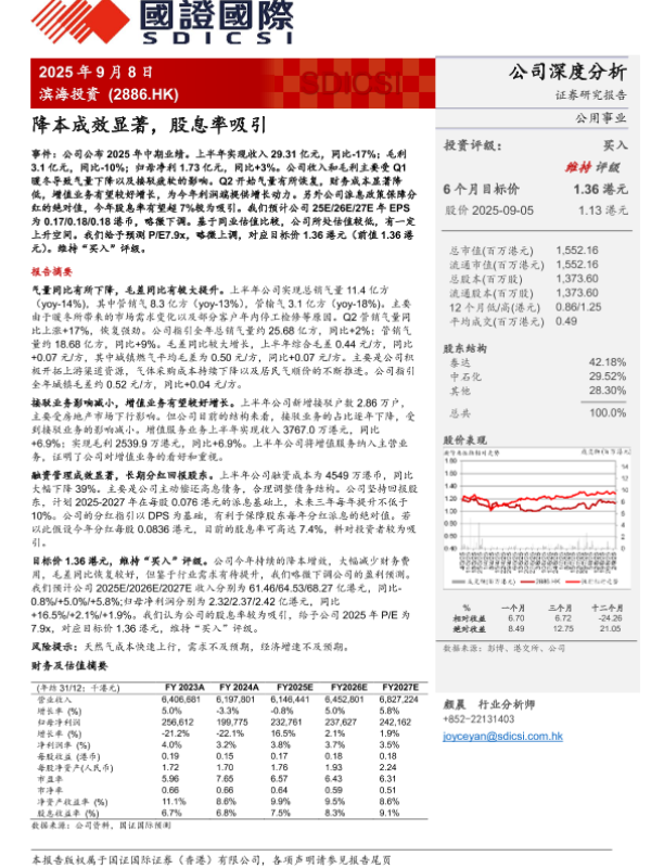【国证國際SDICSI】【202509】滨海投资-降本成效显著,股息率吸引-4页 证券期货研究报告