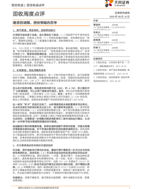【天风证券】【20250810】固收周度点评:增值税调整,债券策略再思考-7页 证券期货研究报告