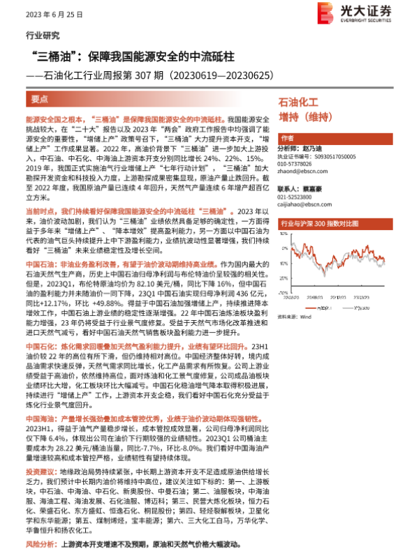【光大证券】【20230625】20230625-光大证券-石油化工行业周报第307期:“三桶油”:保障我国能源安全的中流砥柱-25页 行业研究