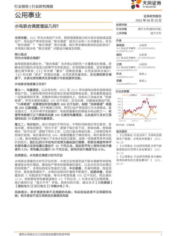 【天风证券】【20210620】公用事业行业研究周报:水电联合调度增益几何?-14页 行业研究