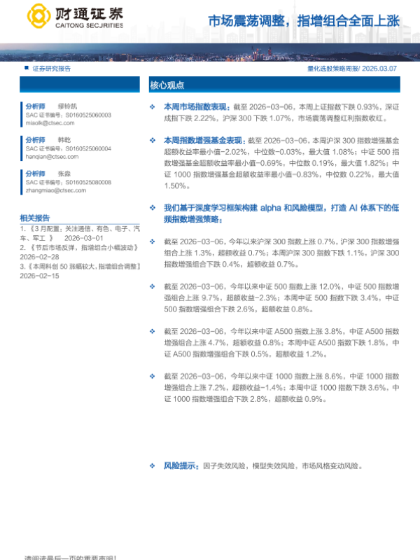 【财通证券】【202603】市场震荡调整,指增组合全面上涨-10页 证券期货研究报告