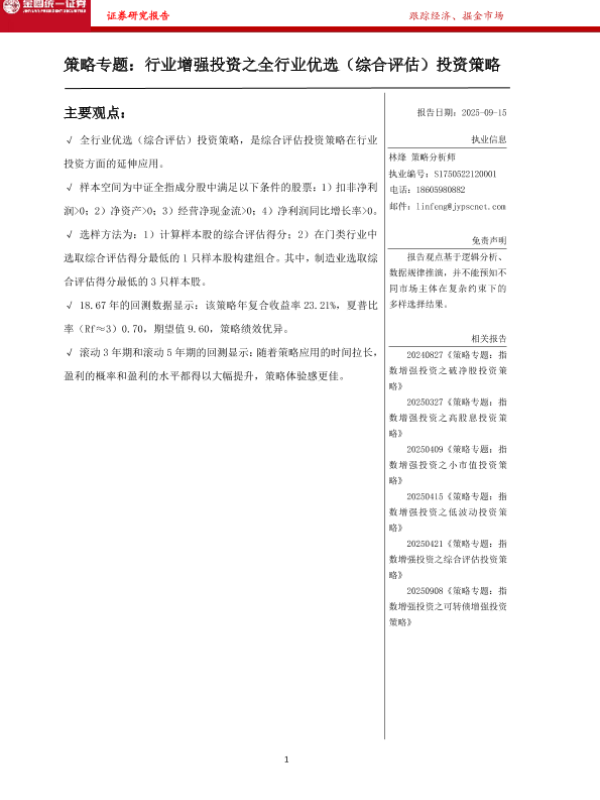 【金圆统一证券】【202509】策略专题:行业增强投资之全行业优选(综合评估)投资策略-12页 证券期货研究报告