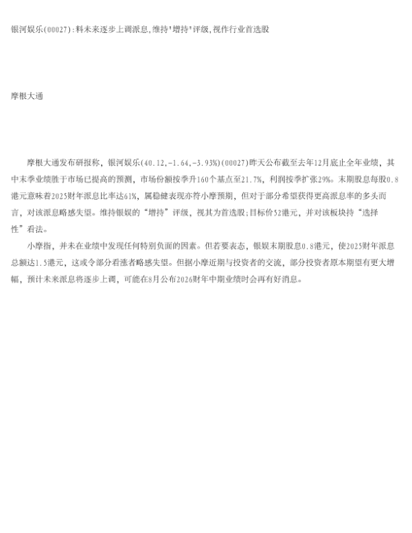 【J.P. Morgan】【2024】料未来逐步上调派息,维持“增持”评级,视作行业首选股-1页 证券期货研究报告