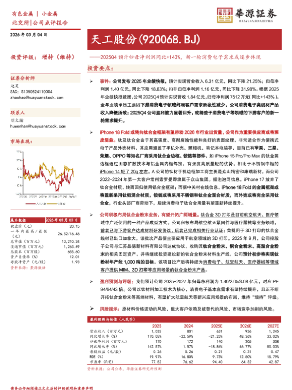 【华源证券】【202603】2025Q4预计归母净利润同比+143%,新一轮消费电子需求或逐步体现-3页 公司研究