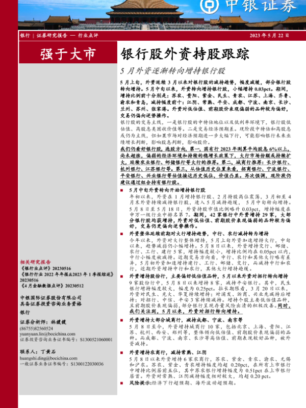 【中银证券】【20230522】5月外资逐渐转向增持银行股-16页 行业研究