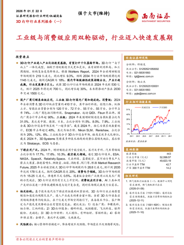 【东北证券】【2026】3D打印或迎来机遇-32页 证券期货研究报告