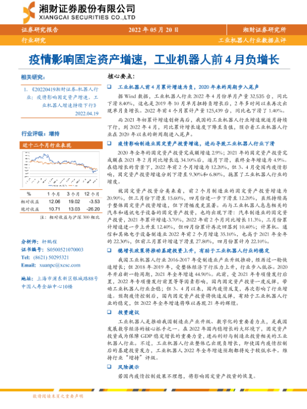 【湘财证券】【20220520】工业机器人行业数据点评:疫情影响固定资产增速,工业机器人前4月负增长-4页 行业研究