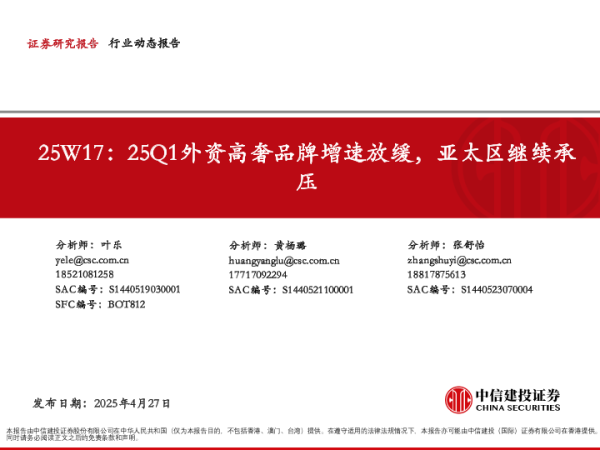 【中信建投证券】【20250427】消费行业25W17:25Q1外资高奢品牌增速放缓,亚太区继续承压-50页 行业研究