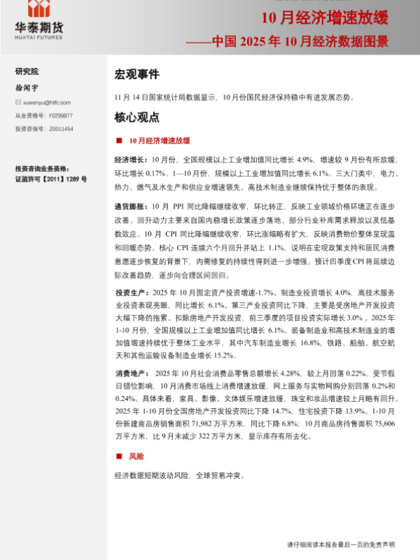 【华泰期货】【202511】中国2025年10月经济数据图景:10月经济增速放缓-20页 证券期货研究报告
