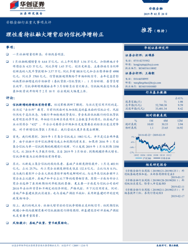 【华创证券】【20190220】理性看待社融大增背后的信托净增转正-5页 行业研究