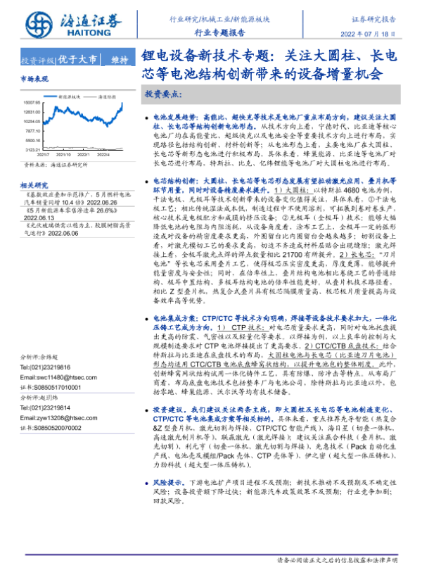 【海通证券】【20220718】锂电设备新技术专题:关注大圆柱、长电芯等电池结构创新带来的设备增量机会-37页 行业研究