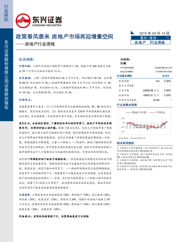 【东兴证券】【20190414】房地产行业周报:政策春风袭来 房地产市场再迎增量空间-12页 行业研究