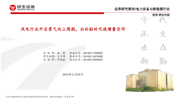 【民生证券】【20191105】电力设备与新能源行业:风电行业开启景气向上周期,后补贴时代现增量空间-19页 行业研究