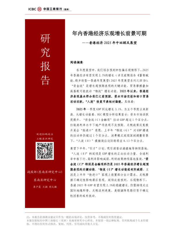 【中国工商银行(亚洲)东南亚研究中心】【20250720】年内香港经济乐观增长前景可期香港经济2025年中回顾及展望-13页 宏观策略