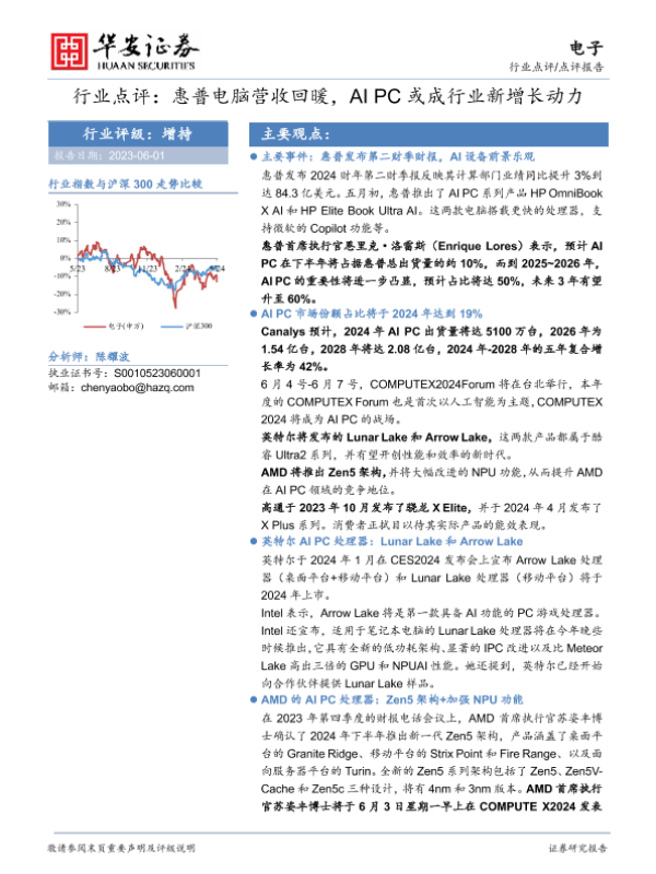 【华安证券】【20240601】20240601-华安证券-电子行业点评:惠普电脑营收回暖,AI PC或成行业新增长动力-10页 行业研究