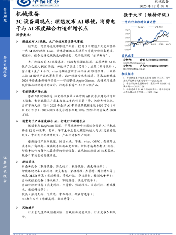 【华福证券】【202512】3C设备周观点:理想发布 AI眼镜,消费电子与 AI深度融合打造新增长点-2页 证券期货研究报告
