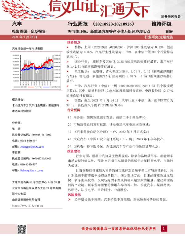 【山西证券】【20210926】20210926-山西证券-汽车行业周报:将节能环保、新能源汽车等产业作为新经济增长点-13页 行业研究