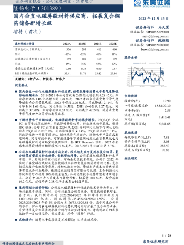【东吴证券】【20231213】隆扬电子:国内垂直电磁屏蔽材料供应商,拓展复合铜箔储备新增长级-28页 行业研究