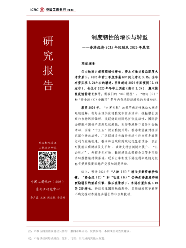 【中国工商银行(亚洲)东南亚研究中心】【2025】制度韧性的增长与转型——香港经济 2025年回顾及 2026年展望-16页 行业研究