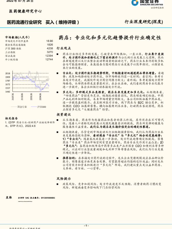 【国金证券】【20220724】医药流通行业深度研究:药店,专业化和多元化趋势提升行业确定性-18页 行业研究