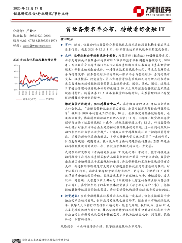 【万和证券】【20201217】计算机行业事件点评:首批备案名单公布,持续看好金融IT-2页 行业研究