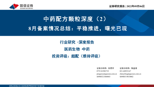 【国信证券】【20220906】医药生物行业中药配方颗粒深度(2):8月备案情况总结,平稳推进,曙光已现-41页 行业研究