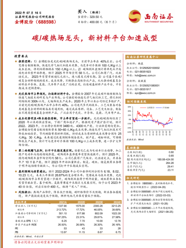 【西南证券】【20220716】碳/碳热场龙头,新材料平台加速成型-38页 行业研究