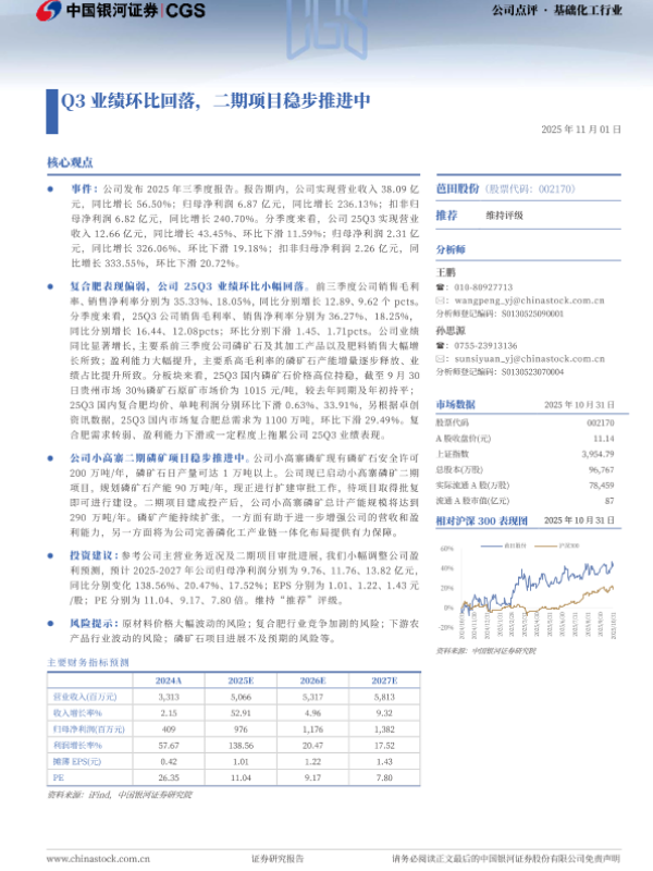 【银河证券】【202511】Q3业绩环比回落,二期项目稳步推进中-3页 证券期货研究报告