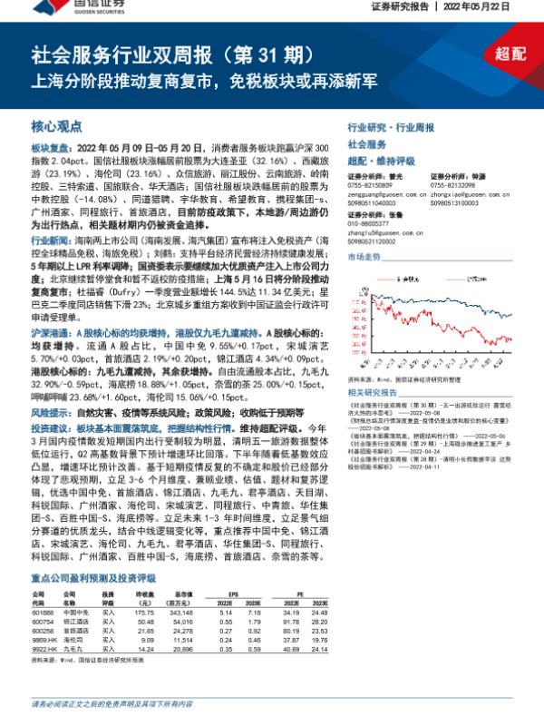 【国信证券】【20220522】社会服务行业双周报:上海分阶段推动复商复市,免税板块或再添新军-11页 行业研究