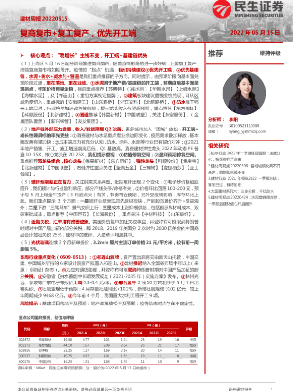 【民生证券】【20220515】建材周报:复商复市+复工复产,优先开工端-21页 行业研究