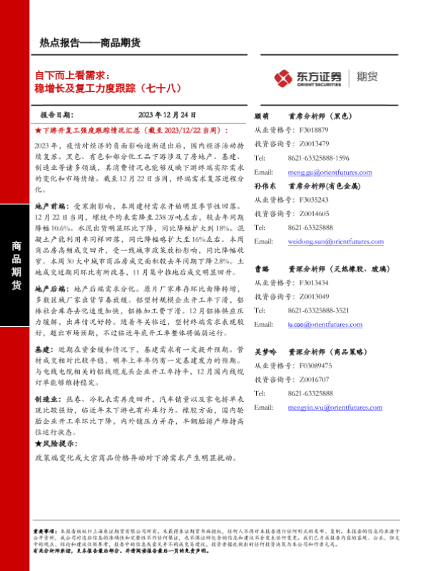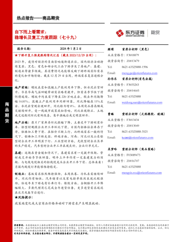 【东证期货】【20240102】商品期货热点报告:自下而上看需求:稳增长及复工力度跟踪(七十九)-13页 行业研究