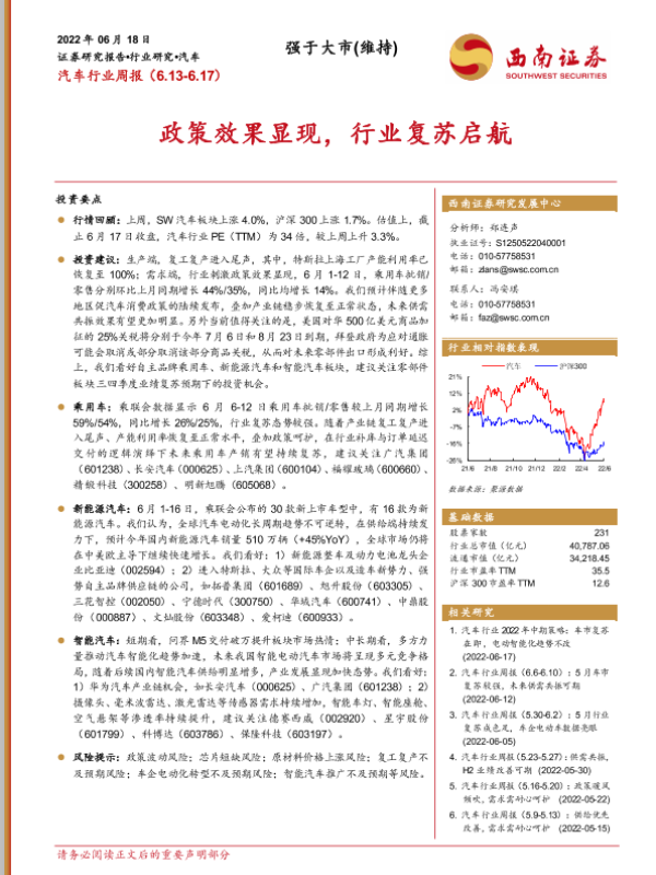 【西南证券】【20220618】汽车行业周报:政策效果显现,行业复苏启航-15页 行业研究
