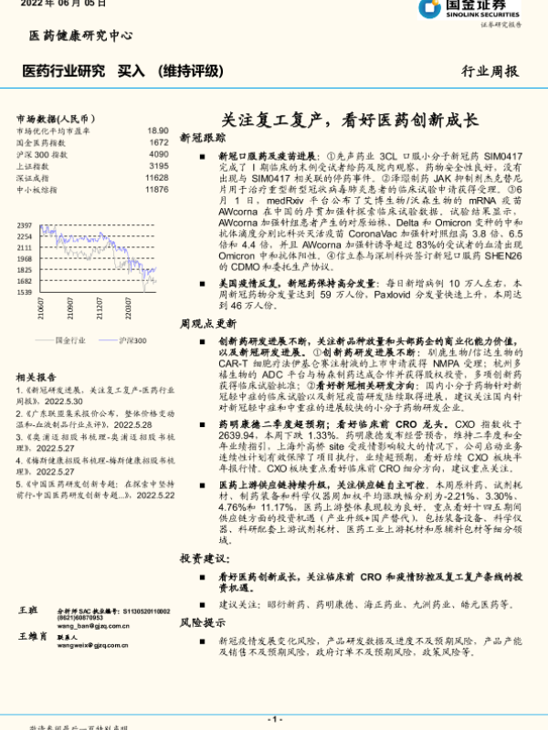 【国金证券】【20220605】医药行业研究:关注复工复产,看好医药创新成长-23页 行业研究